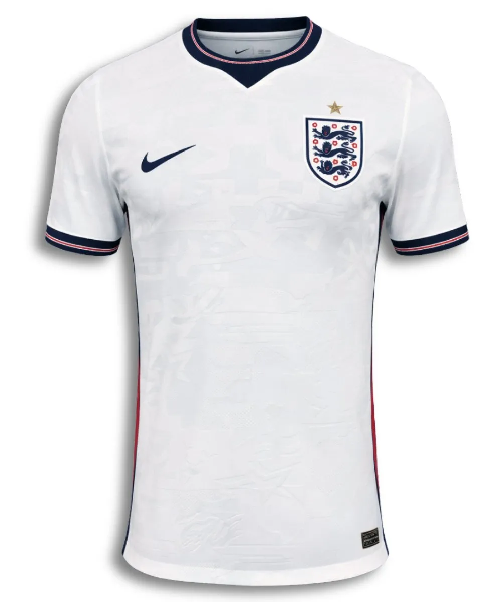 The jersey features England’s classic colors with a sleek and contemporary design inspired by the team’s historic football legacy. Lightweight moisture-wicking material keeps you cool during intense matches or everyday wear. The iconic crest on the chest proudly displays your support for England as they compete for football’s biggest trophy