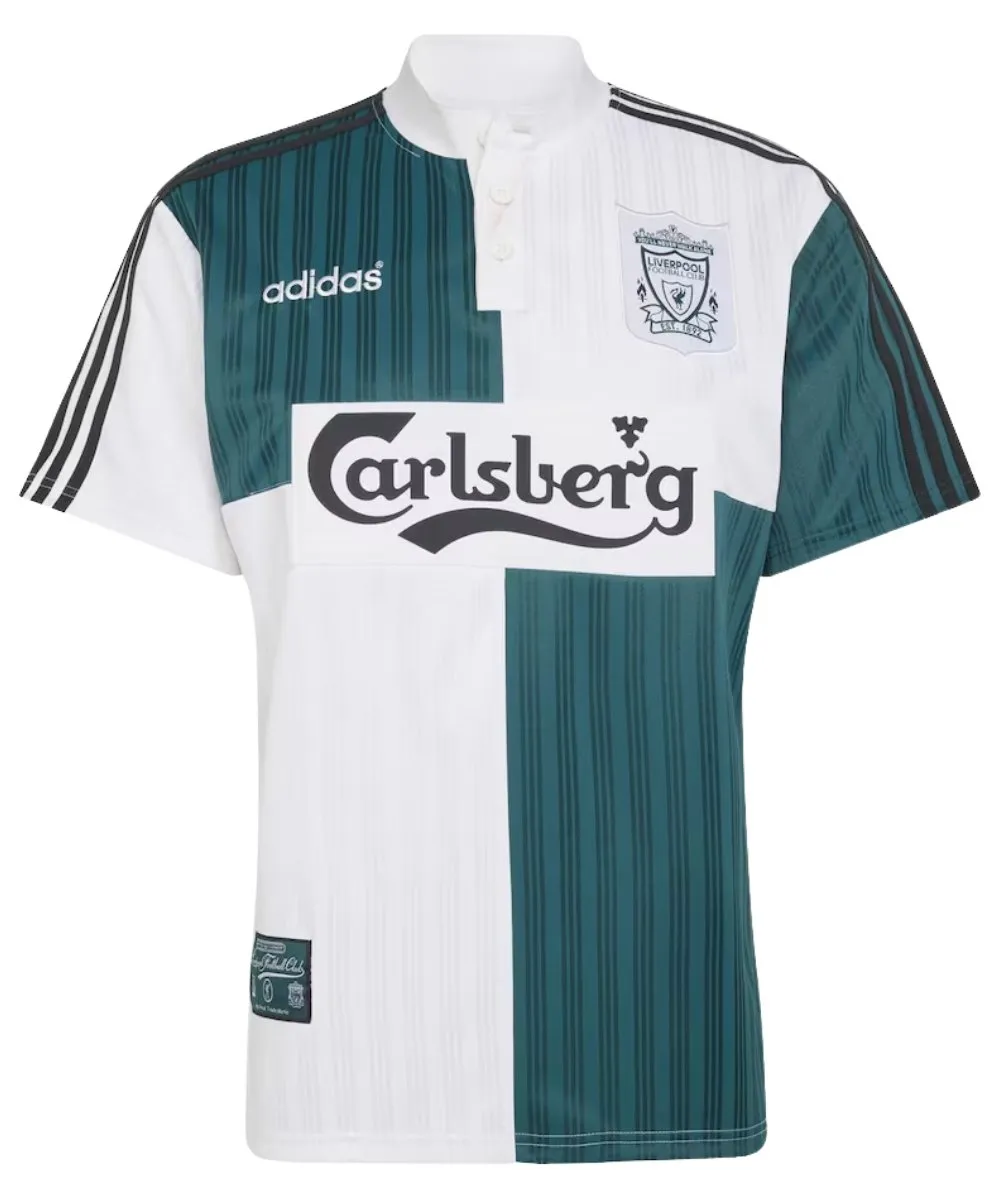 Buy the Liverpool 1995 Away Shirt Green & White with breathable fabric, moisture-wicking comfort design. Available online in Pakistan.